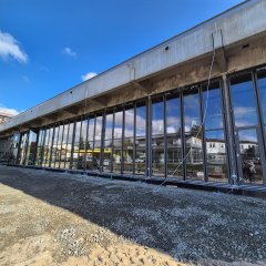 Insgesamt zeigt sich: Die Baustelle entwickelt sich weiterhin planmäßig. Mit den montierten Toren nimmt die Feuerwache nun auch äußerlich immer mehr ihre endgültige Gestalt an. |