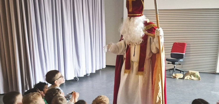 Foto: Der Nikolaus in der Aula der Kita Maria Hilf.