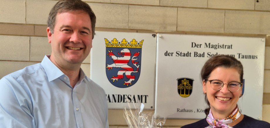 Im Rahmen der interkommunalen Zusammenarbeit zwischen Bad Soden am Taunus und Sulzbach (Taunus) wurde Janine Leubecher nun auch offiziell zur Standesbeamtin auf Widerruf für die Gemeinde Sulzbach ernannt. Die formelle Ernennung erfolgte durch den Sulzbacher Bürgermeister Elmar Bociek, der dazu ins Bad Sodener Rathaus gekommen ist, um die Bestellungsurkunde persönlich zu überreichen und Janine Leubecher zum Start ein kleines Präsent zu übergeben.
