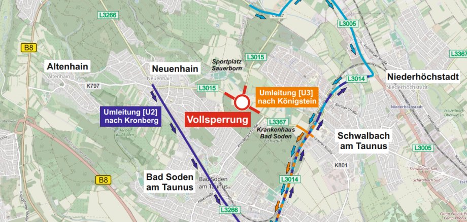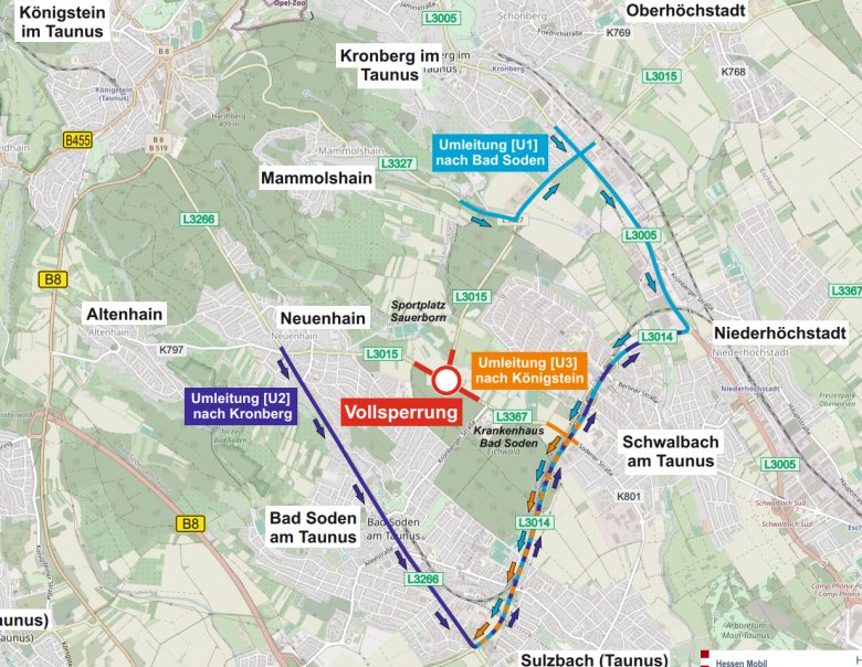Der Verkehr von und nach Mammolshain wird über die Kronthaler Straße in Mammolshain zunächst auf die L 3015 nach Kronberg geleitet und dann über die Frankfurter Straße nach Schwalbach am Taunus.