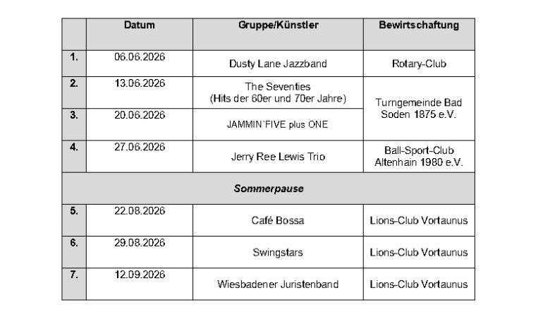 Die Konzerte findet im Sommer jeweils samstags von 12:30 Uhr bis 15:30 Uhr statt.