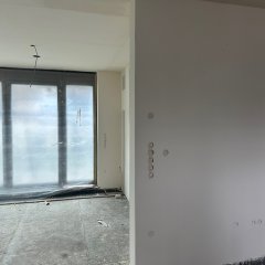 Glastore sind verbaut! Am 25. März 2026 war es dann so weit: Das erste Tor wurde erfolgreich fertiggestellt. Nur zwei Tage später war bereits die gesamte Torfront zur Königsteiner Straße geschlossen – ein Meilenstein, der die Dimension und Funktionalität der künftigen Fahrzeughalle nun eindrucksvoll erkennen lässt. Nach der mechanischen Montage aller Toranlagen folgen in den nächsten Schritten die elektrotechnischen Arbeiten. Dazu gehören die vollständige Verkabelung sowie die Anbindung an die Steuerungstechnik. Abschließend werden alle Anlagen umfassend geprüft, damit ein sicherer und reibungsloser Betrieb gewährleistet ist. Feuerverzinkte Metallfassade Auch an anderer Stelle schreiten die Arbeiten kontinuierlich voran. Seit Ende Januar wird die vorgehängte, feuerverzinkte Metallfassade umgesetzt. Zunächst wurde am Wohnhaus die Unterkonstruktion montiert und die Wärmedämmung angebracht. Parallel dazu haben an der Feuerwache die Arbeiten an der Sockeldämmung begonnen. Innenausbau läuft planmäßig Im Innenbereich entwickelt sich der Ausbau planmäßig weiter. Nachdem die technischen Gewerke ihre Leitungen in die Trockenbauwände eingebracht hatten, wurden im Erdgeschoss die Wände geschlossen und beidseitig beplankt. Durch das anschließende Spachteln entstanden gleichmäßige Oberflächen, die nun bereit für die Folgearbeiten sind. |
