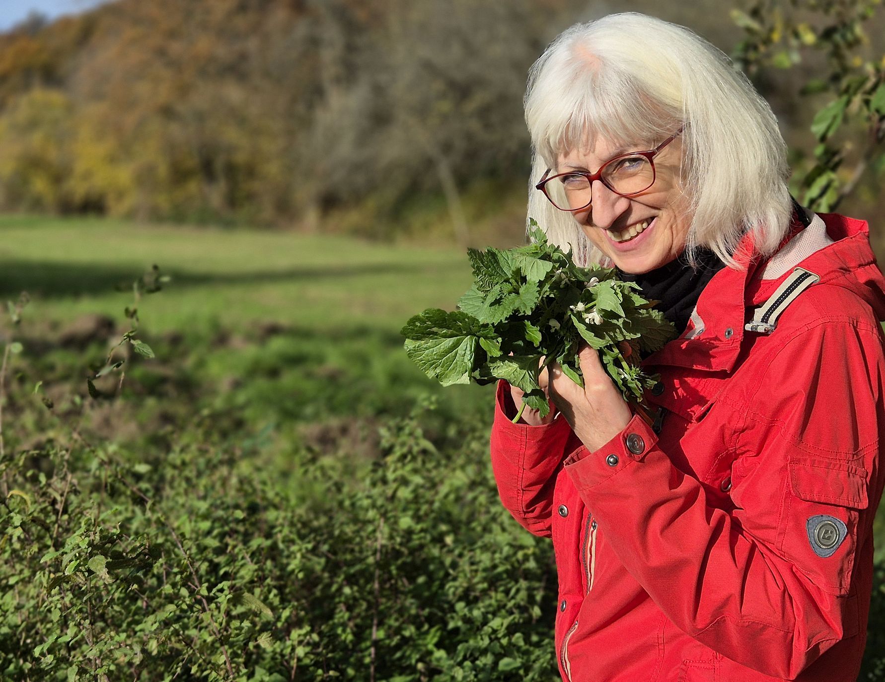 | 12.11.2025 | Kräuterfrau Regine Ebert im Süßen Gründchen | Regine Ebert mit gesammelten Kräutern |