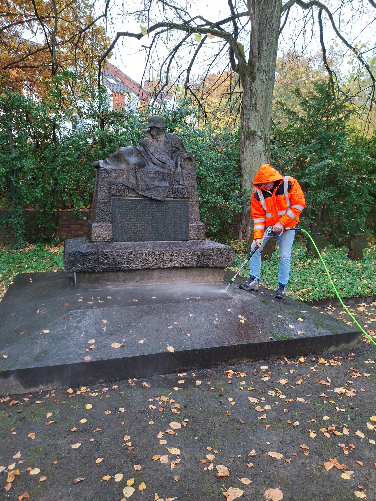 | 19.11.2025 | Ehrenmal auf dem Bad Sodener Friedhof restauriert | Das Ehrenmal vor der Reinigung Das Ehrenmal am Volkstrauertag Postkarte von 1930 |